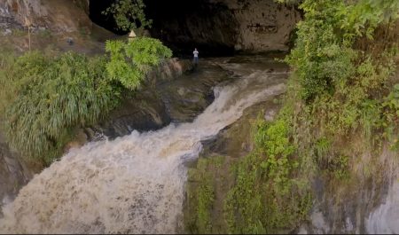 Tras sufrir una pequeña caída, el motorista acaba en un lugar exótico llamado las Ventanas de Tisquizoque, una gruta de 273 metros de altura.