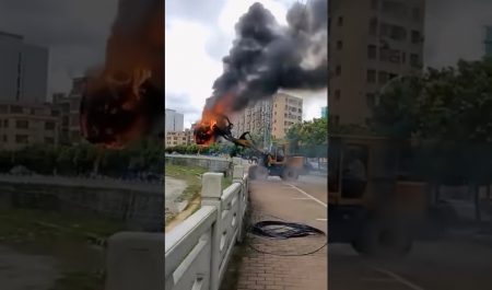La incomprensible solución de un gruista para deshacerse de un coche eléctrico en llamas