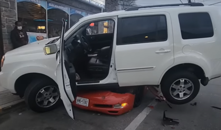 Un hombre aparca sobre un Corvette creyendo que era la acera