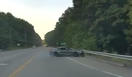 Este vídeo, compartido en la red social Reddit, muestra al conductor de un Mustang intentando girar a la derecha en una intersección. En plena maniobra, decide pisar fuertemente el acelerador, lo que provoca que el coche haga un giro de 180 grados.