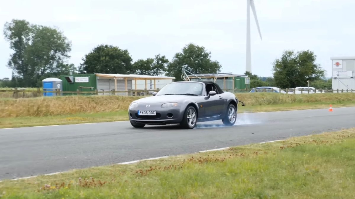 A bordo de Mazda MX-5 y a 100 millas por hora (96 km/h), el coche necesitó 34,73 metros para detenerse con el ABS activado. Después, tanto Mansell como un conductor inexperto intentaron rebajar esta cifra sin la ayuda del ABS.