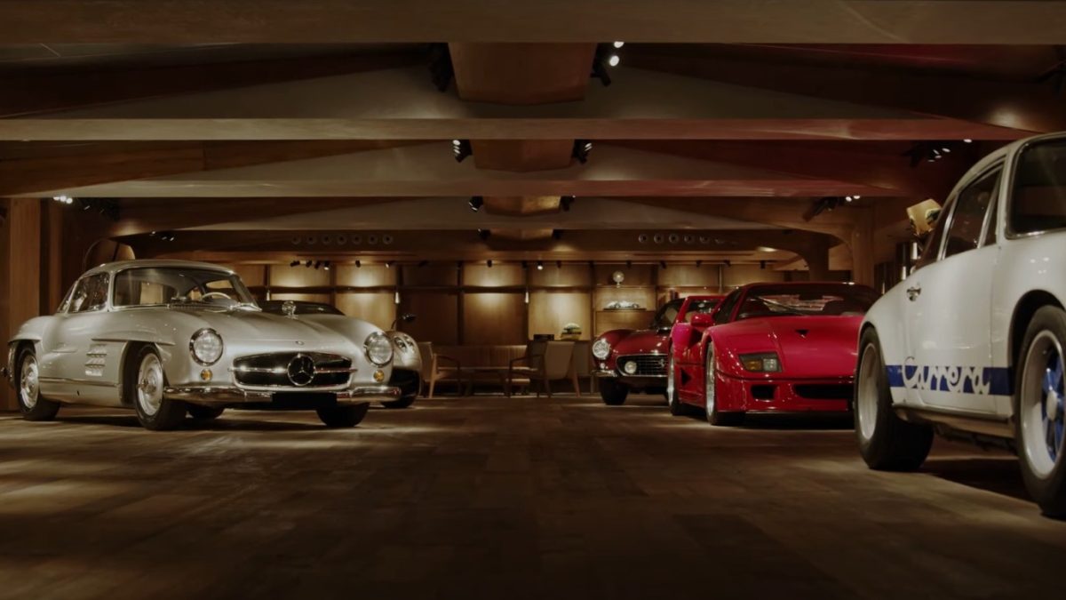 Una biblioteca-garaje de lujo rodeada de coches clásicos
