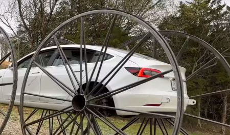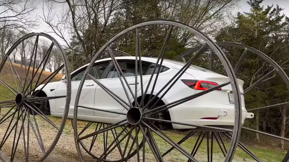 ¿Es posible conducir un Tesla del revés con unas ruedas gigantes? Un 'youtuber' hace la prueba con un Model 3 para comprobar su seguridad.