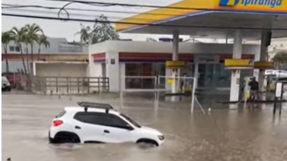 Como si de un barco se tratase, el SUV atrapado en una inundación consigue salir a flote y volver al asfalto sin dificultades.