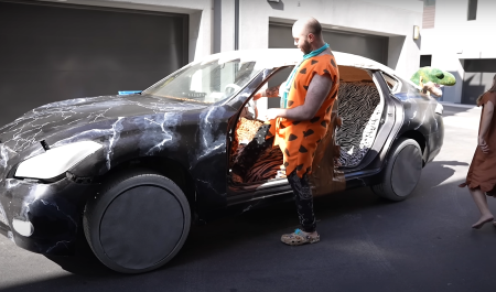 El coche real de Los Picapiedra existe: lo destruye, le quita el motor y funciona con la fuerza de los pies