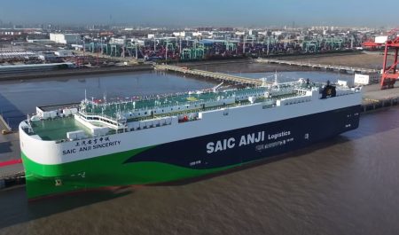 Bautizado SAIC Anji Sincerity, este buque carguero realizó su primer viaje desde Shanghái a Europa en enero de 2024.