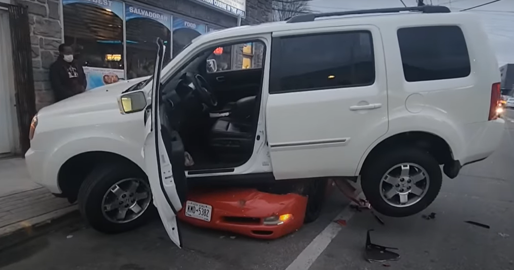 Un hombre aparca sobre un Corvette creyendo que era la acera