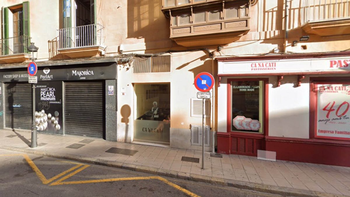 La calle se trata de Palau Reial, que desemboca en la pequeña plaza de Cort. Además de que esta zona suele tener áreas con prioridad peatonal, el aparcamiento está limitado. De hecho, hay señales que indican que solo los vehículos oficiales pueden estacionar ahí.