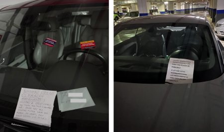 “Hola. Esto es de un vecino que aparca mal el coche en el garaje y el tío es típico de gym”, dice el mensaje por interno del usuario que envió la imagen. El coche en cuestión tiene varios mensajes en el parabrisas: “Tienes dinero para anabolizantes ¿y no para una plaza de parking? ¿O es que estás ahorrando para los medicamentos para disfunción eréctil?”, dice uno de ellos.