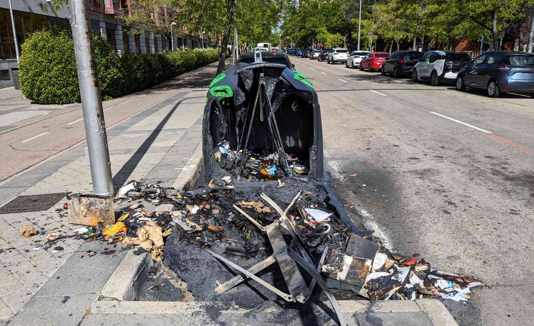 Sin embargo, lo que parece una solución rápida de estacionamiento puede transformarse en una pesadilla de cenizas y hierros retorcidos en cuestión de minutos. El vandalismo nocturno ha puesto en el punto de mira a estos depósitos de residuos, y los coches colindantes son las víctimas colaterales de una diversión tan absurda como destructiva.