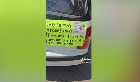 “Aún me voy para atrás y se me apaga”: se saca el carné, pone varios carteles en su coche y arrasa en redes