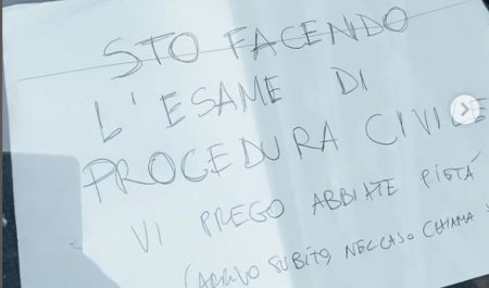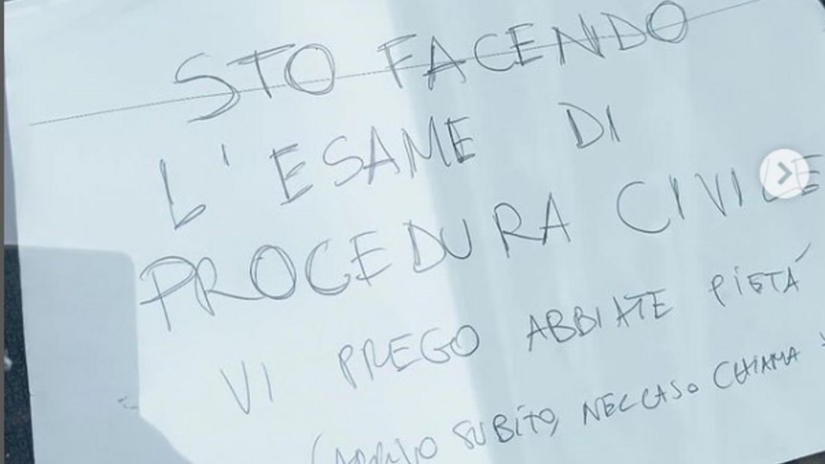Lo hizo dejando un cartel en el parabrisas de su coche mal aparcado. El mensaje rezaba así: “Estoy haciendo el examen de procedimiento civil. Os lo ruego, tened piedad (vuelvo enseguida)”. Además, dejó un número de teléfono para que le pudieran contactar en caso de que el vehículo molestara en exceso.
