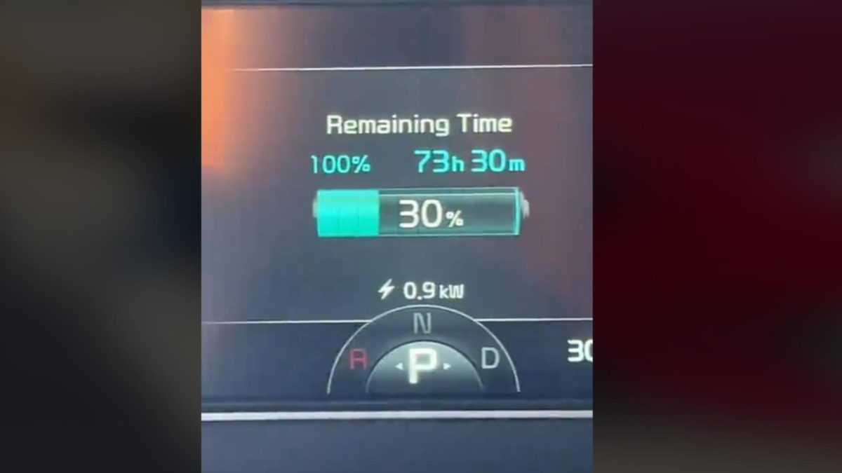 El problema es que la batería del coche sólo está recibiendo 0,9 kilovatios por hora. Todo apunta a que la nueva propietaria no ha tenido en cuenta todo lo relacionado con la carga de su nuevo vehículo antes de comprarlo.