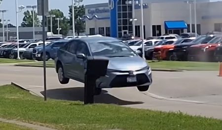 Las altas temperaturas en Estados Unidos provocaron que el pavimento se hinchara y se formara una especie de bache que hizo volar a un Toyota.