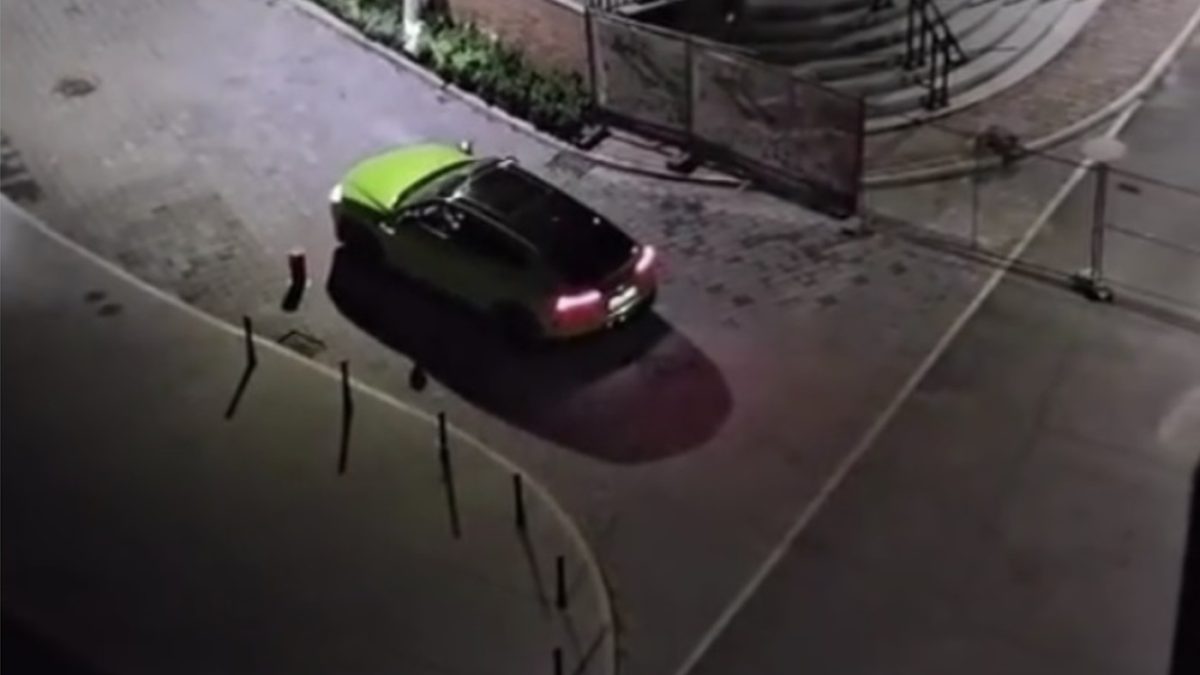 Es de noche y el Lamborghini aparece en escena en una calle de localización desconocida, pero en la que se ve claramente que está cortada por tres bolardos, a los que se suman en la acera otros tantos, todos ellos con el objetivo de no dejar pasar a los coches.