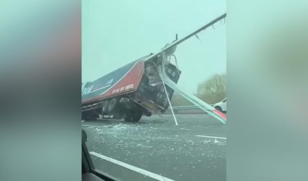 Es difícil de creer, pero sucedió: una pala gigante de una turbina eólica atravesó un camión y así quedó
