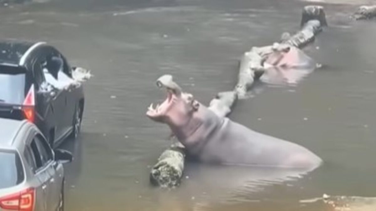 Una peculiar escena ha tenido lugar en Doradal (Colombia), con unos hipopótamos como protagonistas. Estos animales se han instalado en una carretera y se han convertido en una especie de peaje en el que le piden a los conductores comida para dejarles pasar.