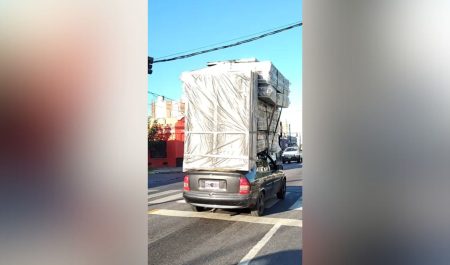 Al menos ocho colchones llevaba a cuestas el dueño de este Opel Corsa en plena carretera. El individuo que filmó la escena calificaba la acción de “animalada” y comentaba entre risas la situación con el conductor situado a su izquierda. Sin embargo, llevar carga sobresaliente puede acarrear multas de elevadas cuantías, además de ser peligroso para el resto de automovilistas.