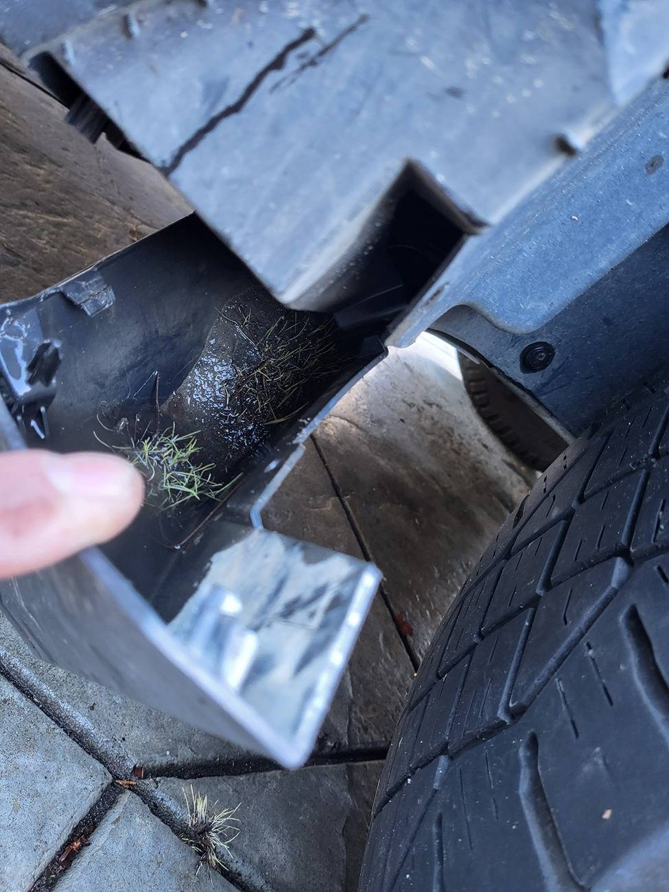 Quitar el deflector trasero era un trabajo complicado, pero al ver que en las piezas delanteras el proceso era más simple, este conductor decidió comprobar que la situación no se hubiera repetido. Hizo bien, por en los cuatro deflectores de su Cybertruck se encontró con hierba, tierra y agua.
