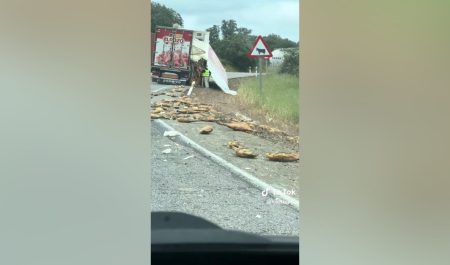 El camión, que circulaba por una carretera en Huelva, tuvo un accidente que provocó la pérdida de numerosas unidades de este alimento.