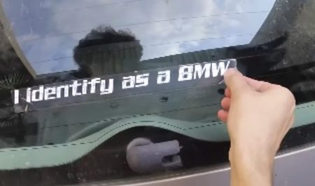 • Pone una pegatina en la luna trasera que reza “Me identifico como un BMW”.