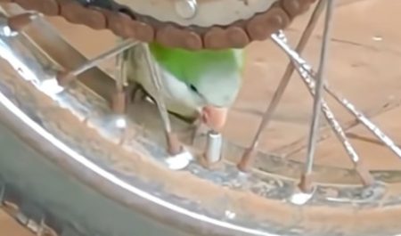 Un pequeño animal con plumas y pico era el responsable de que un motociclista tuviera que hinchar la rueda de su moto cada vez que quería conducir.