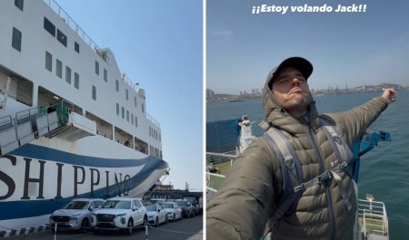 En Vladivostok ha pasado tres días antes de embarcar rumbo a Corea y después de enfrentarse al correspondiente interrogatorio donde no sólo le han preguntado todos sus datos, también qué opina sobre Ucrania. El ferry, que ya ha salido de Rusia, tardará 24 horas en completar el viaje hasta Donghae, una ciudad ubicada en el este del país asiático. Allí pasará 15 días.