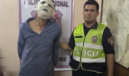 Un hombre llamado Fernando Araújo, de 41 años y vestido de esa manera, asustó a varios niños mientras caminaba y trató de robar una motocicleta aparcada frente a una casa en la ciudad de Ñemby en Paraguay. Todo esto a plena luz del día.