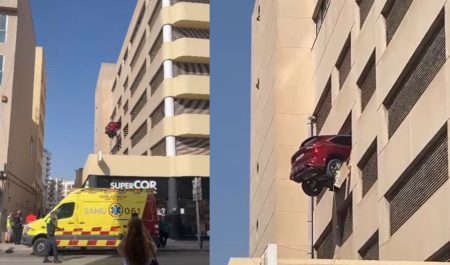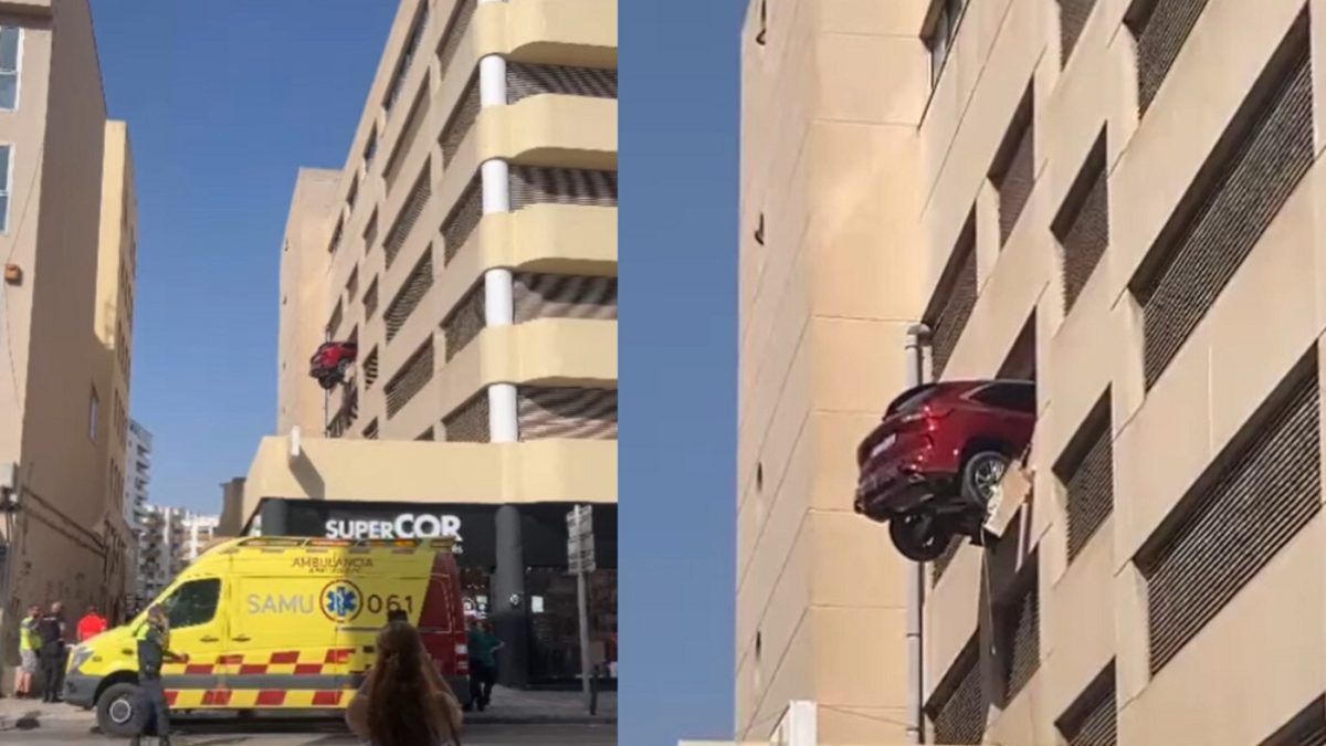 Según explica el ‘Periódico de Ibiza’, una mujer con poca experiencia al volante cometió un error dando marcha atrás en el aparcamiento, al encontrase con otro vehículo: queriendo presionar el freno, lo hizo con el acelerador y su coche golpeó y traspasó la rejilla en la fachada del cuarto piso del estacionamiento.