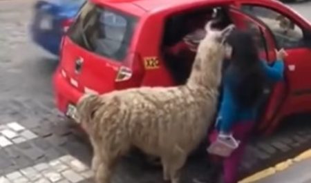 Llevar un perro o un gato en la parte trasera del coche es algo habitual entre los conductores, pero transportar una llama, no. Esto es lo que ha ocurrido en Perú, donde se ha visto a este animal subirse a un taxi muy pequeño como un pasajero más. Las imágenes ya se han hecho virales.