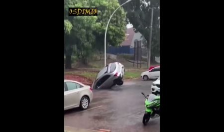 El vehículo, que estaba estacionado en una calle de Brasilia, se fue introduciendo poco a poco en el hoyo hasta acabar prácticamente absorbido.