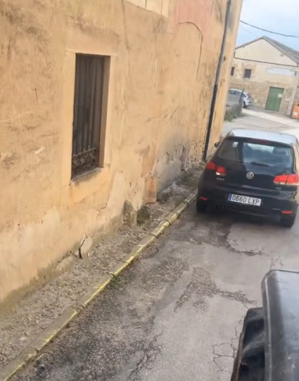 Este agricultor intentó pasar su tractor por una zona de Segovia en San Pedro de Gaíllos que tenía un obstáculo: un coche aparcado que, debido a lo estrecho de la calle, aparentemente no le dejó espacio. Peor aún: el Volkswagen Golf estaba aparcado en plena línea amarilla continua.