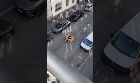 El joven pensó durante varios minutos cómo podía llevar el mueble en su patinete y al final lo consiguió de la forma más ingeniosa.
