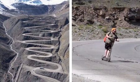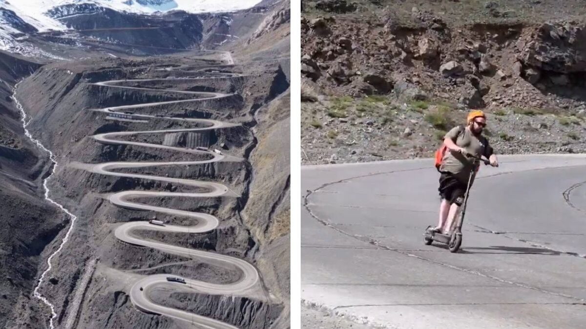 Las condiciones climáticas adversas, como nieve y hielo en invierno, y el intenso tráfico de camiones, aumentan el riesgo de accidentes. Aunque actualmente es verano en Chile, este hombre argentino (de Mendoza, según las redes) se atrevió a cruzar este sinuoso camino en nada menos que un patinete eléctrico. ¿Irresponsable o valiente?, se preguntan los usuarios.